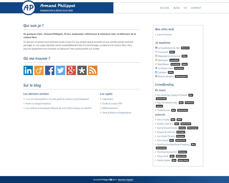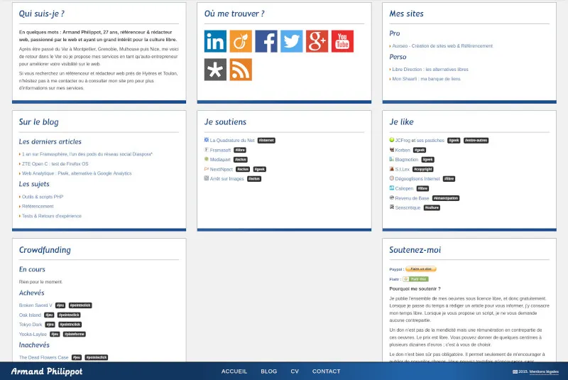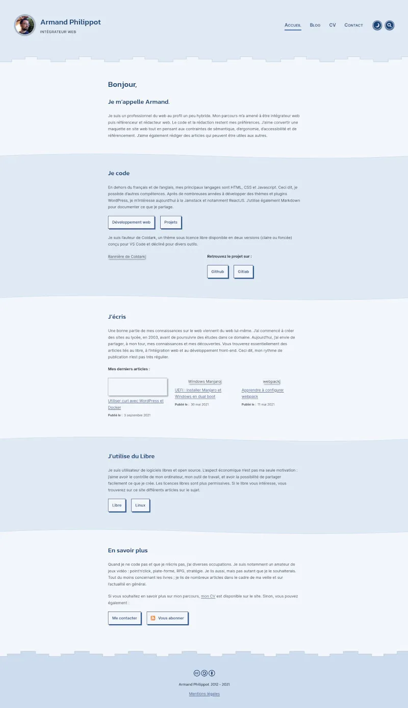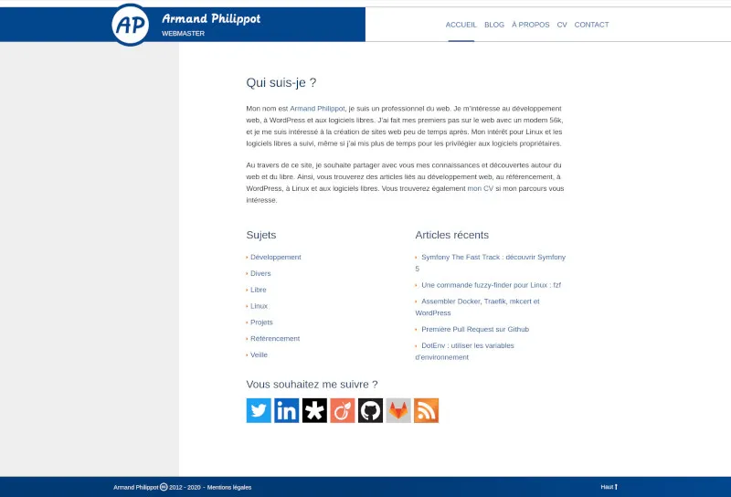 Before starting from scratch with this site, I maintained another website for years: ArmandPhilippot.com. At first, it was a gateway to my various profiles on the web. Later, I transformed it into a more complete site with a blog section.